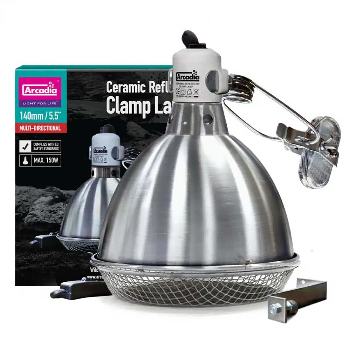 Arcadia Ceramic Clamp Lamp with Ceramic Holder – Stainless Steel – 14cm (5.5”)