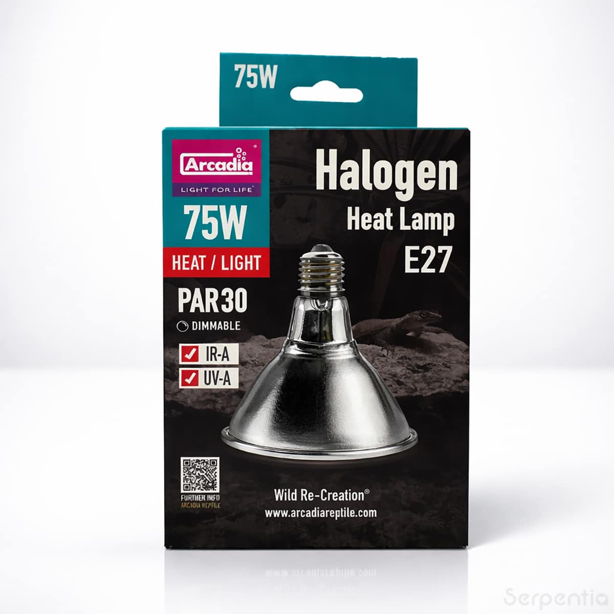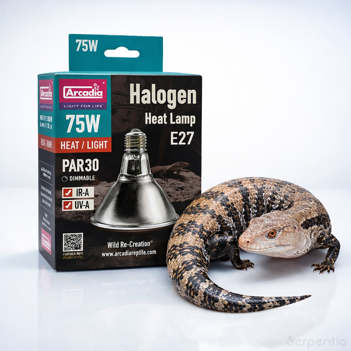 This robust PAR30 halogen lamp features a frosted lens, hard-glass splash-resistant construction and an internal metal reflector for optimal light and heat delivery to the basking zone. This reptile basking bulb emits no UV and must be paired with a suitable Arcadia UVB system for complete reptile lighting.