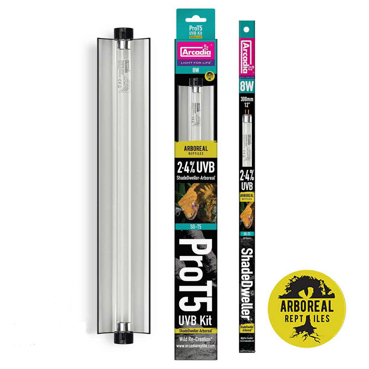 - Includes Arcadia ShadeDweller Arboreal 2.4% UVB T5 lamp