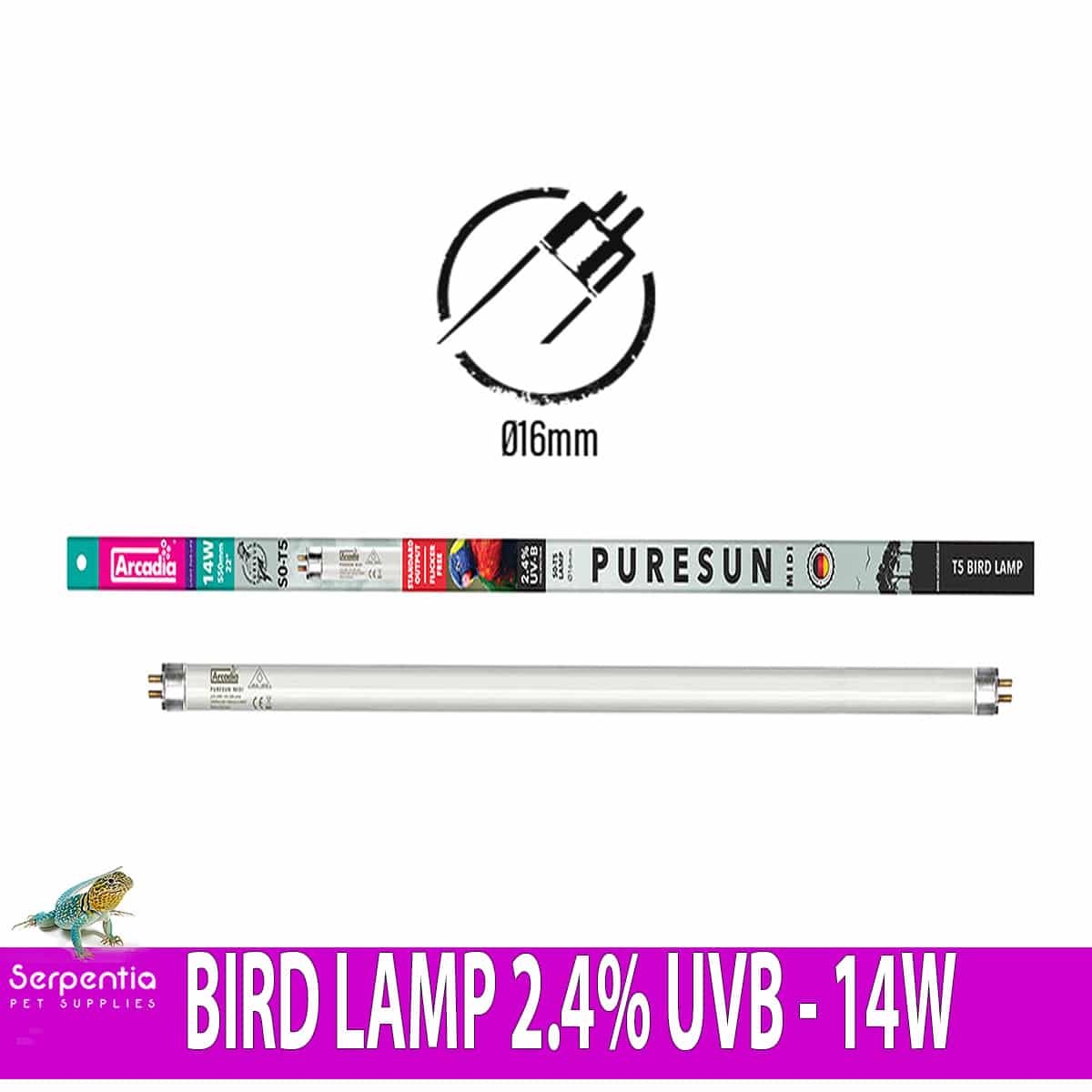 - Replacement UVB tube for Arcadia PureSun Bird Lamp Midi 14w kit