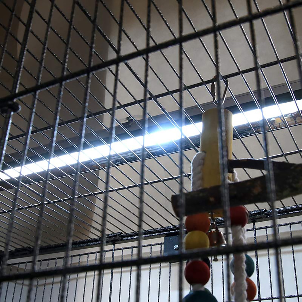 The lamp produces 2.4% UVB with balanced UVA, suitable for birds requiring low-level UV exposure.