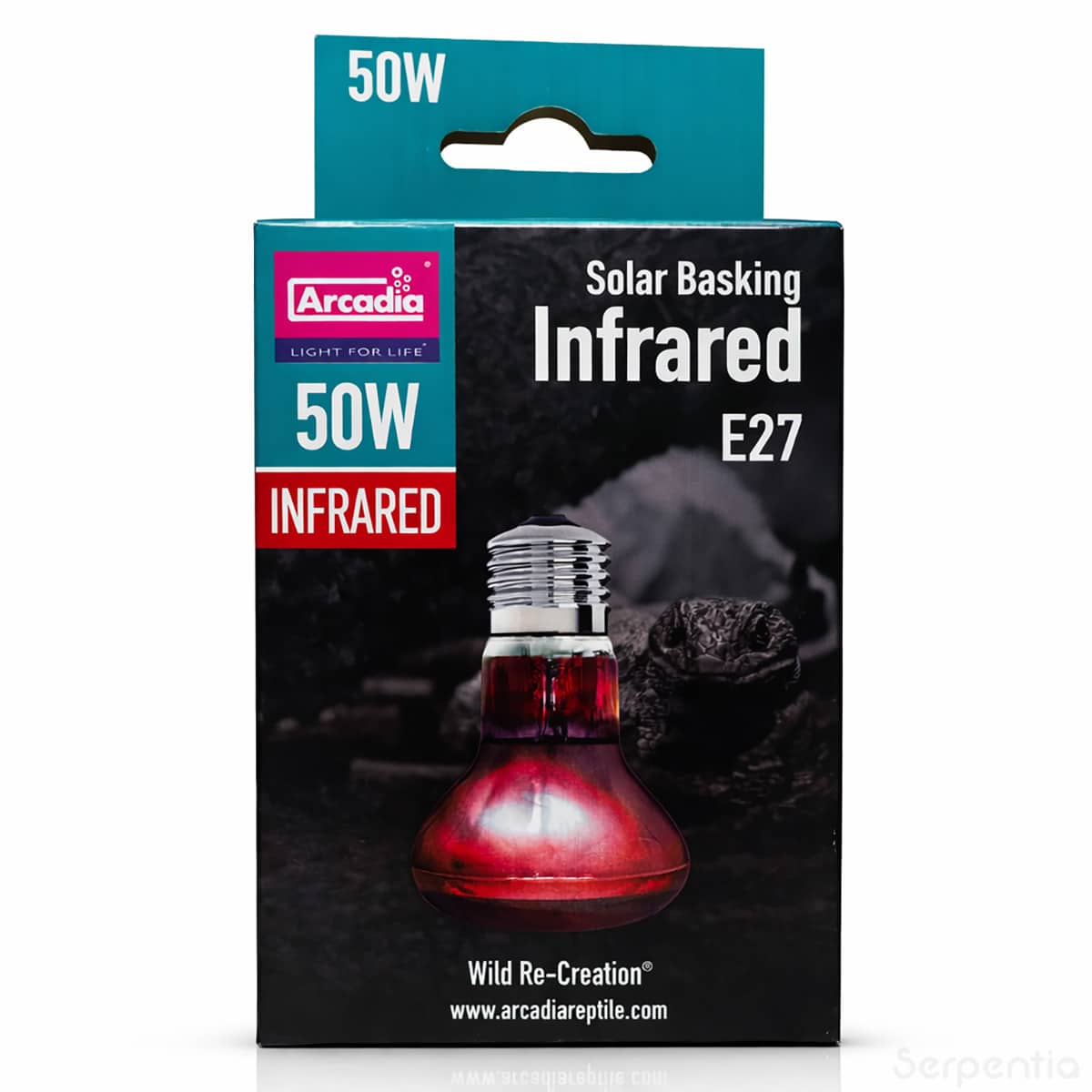 Arcadia Solar Basking Infrared Heat Lamp – 50 W is a specialised infrared basking bulb that provides strong radiant warmth with minimal visible light, creating a gentle basking zone for reptiles and amphibians.