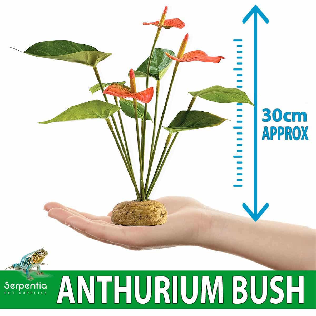 The Anthurium Bush can be used on its own or alongside live plants, making it ideal for areas of the vivarium where real plants may struggle to survive.