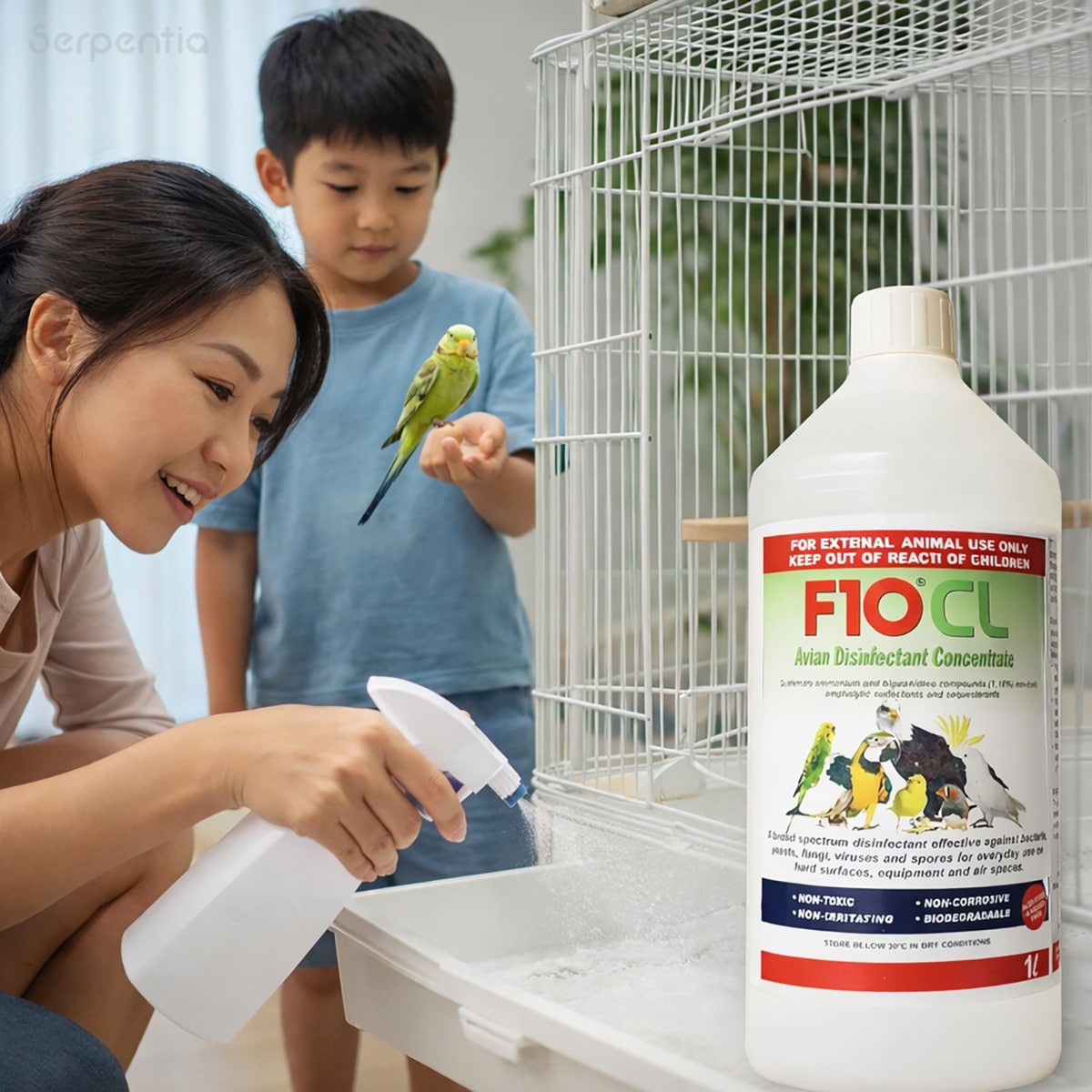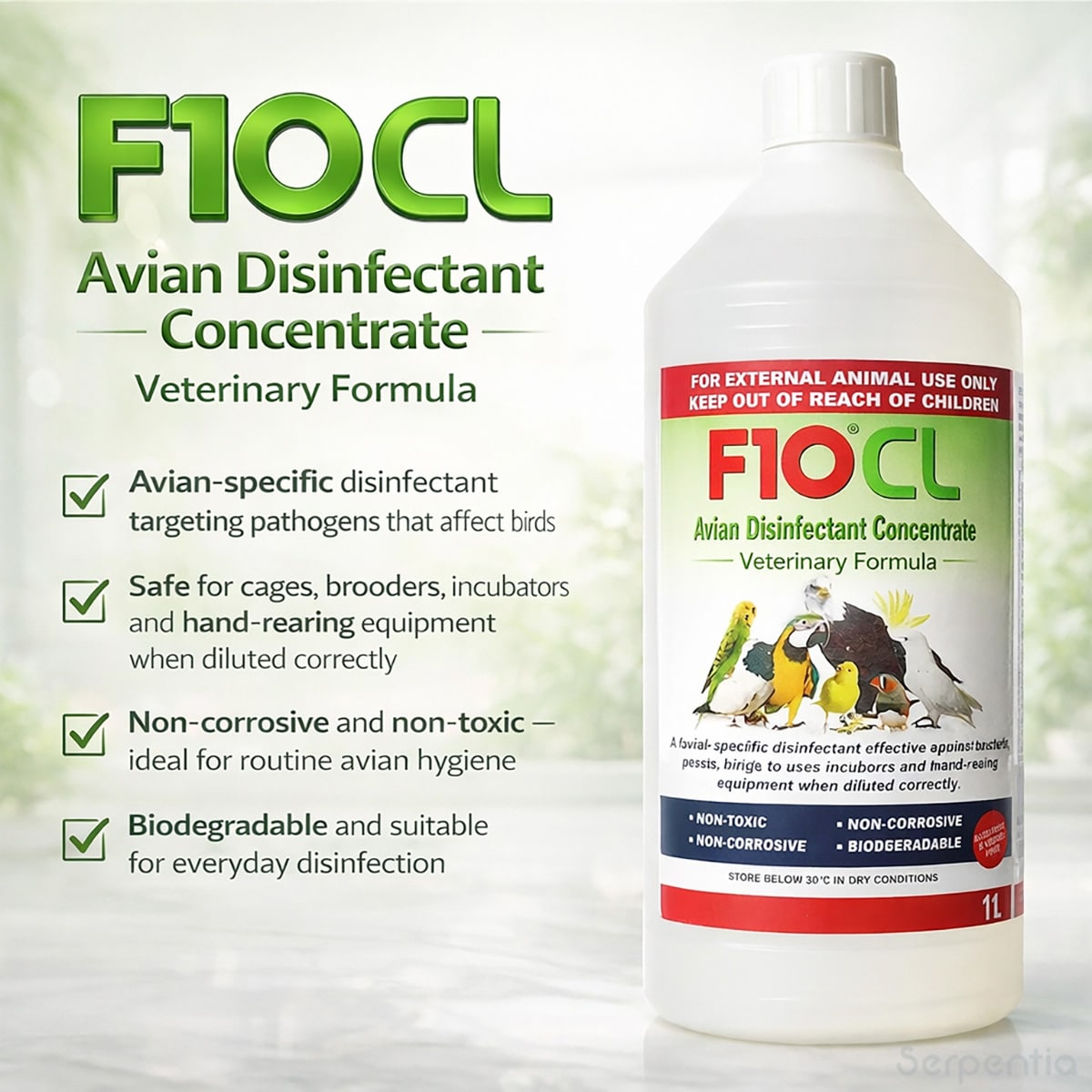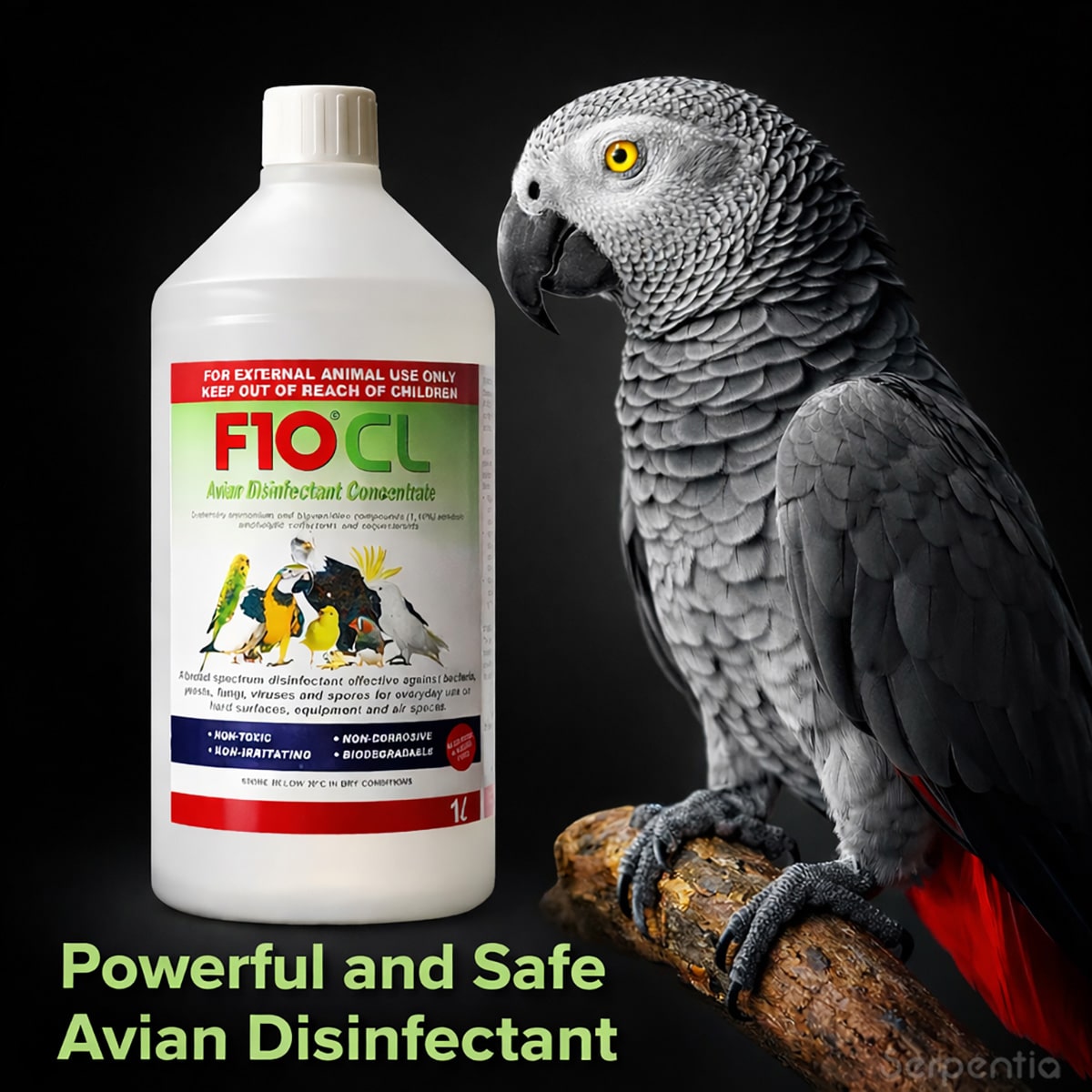 F10 CL is formulated specifically for pathogens that affect birds and uses dilution rates appropriate for avian environments.