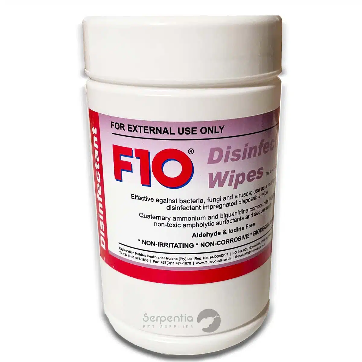 F10 Disinfection Wipes are highly effective against bacteria, fungi and viruses, and the F10SC disinfectant which impregnates the wipes is at a 1:100 dilution, a dilution proven effective against the most resistant viruses, including circovirus (PBFD), parvovirus and coronavirus.