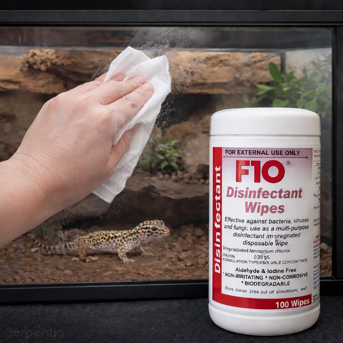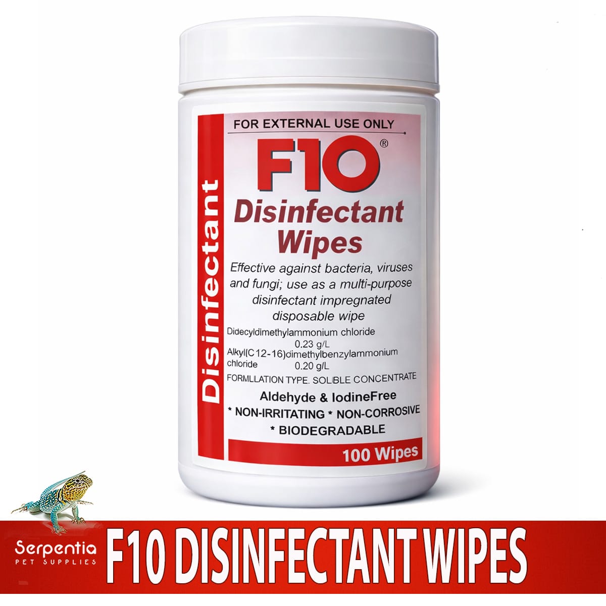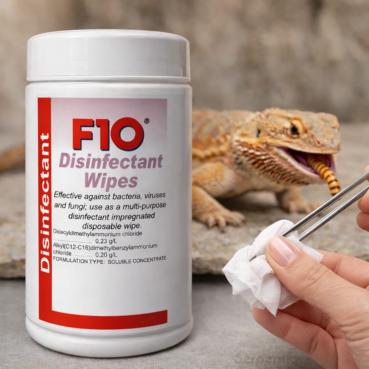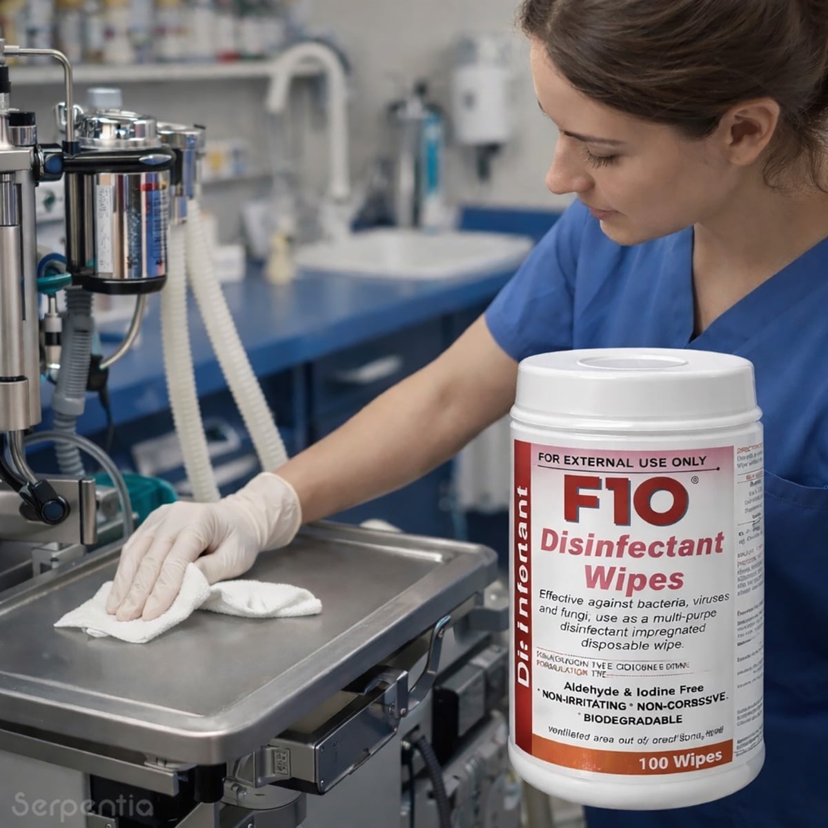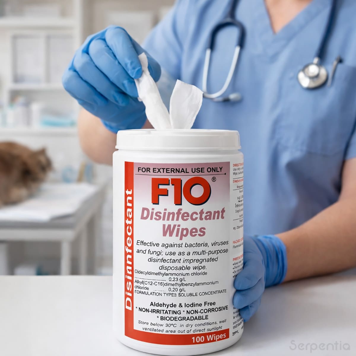- Single-use wipes impregnated with F10 SC at a 1:100 dilution