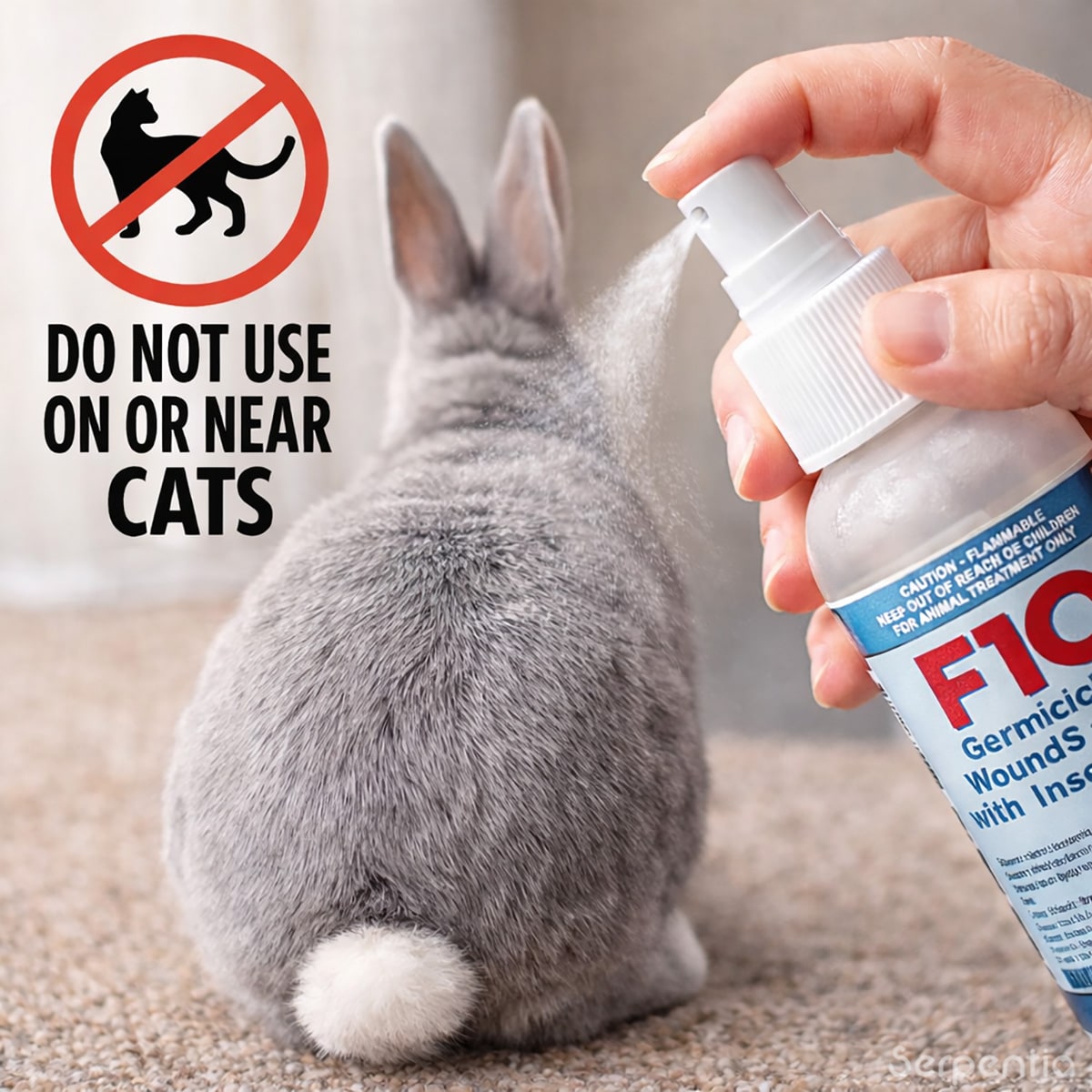 Rabbits and small pets: Apply 1–2 atomiser spray pump actions from the 100ml bottle onto the affected area. Do not exceed 2 spray actions per kg of body weight.