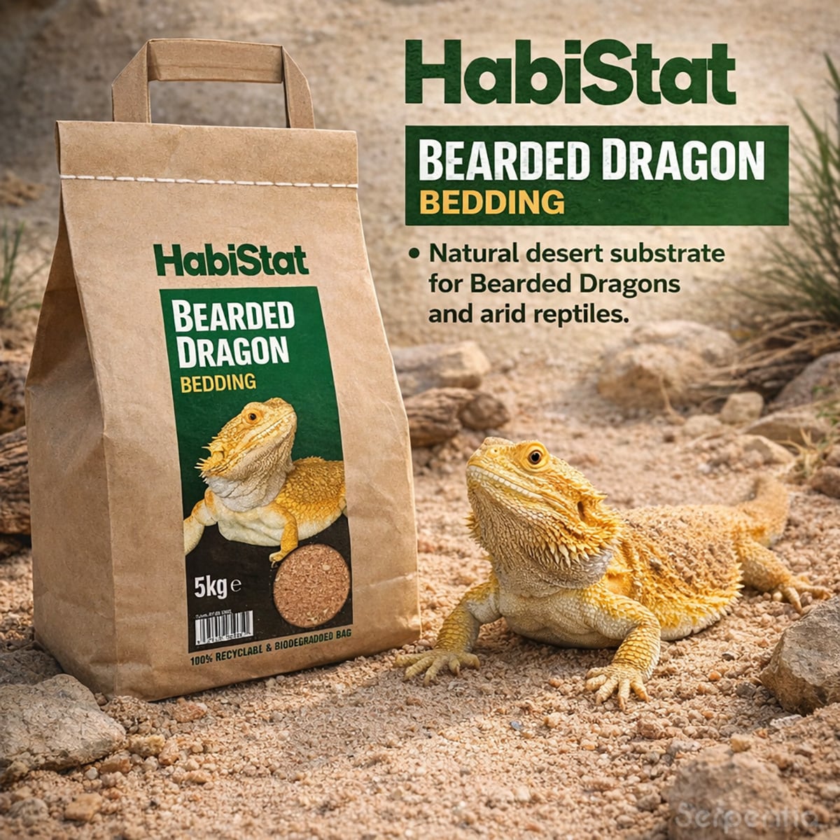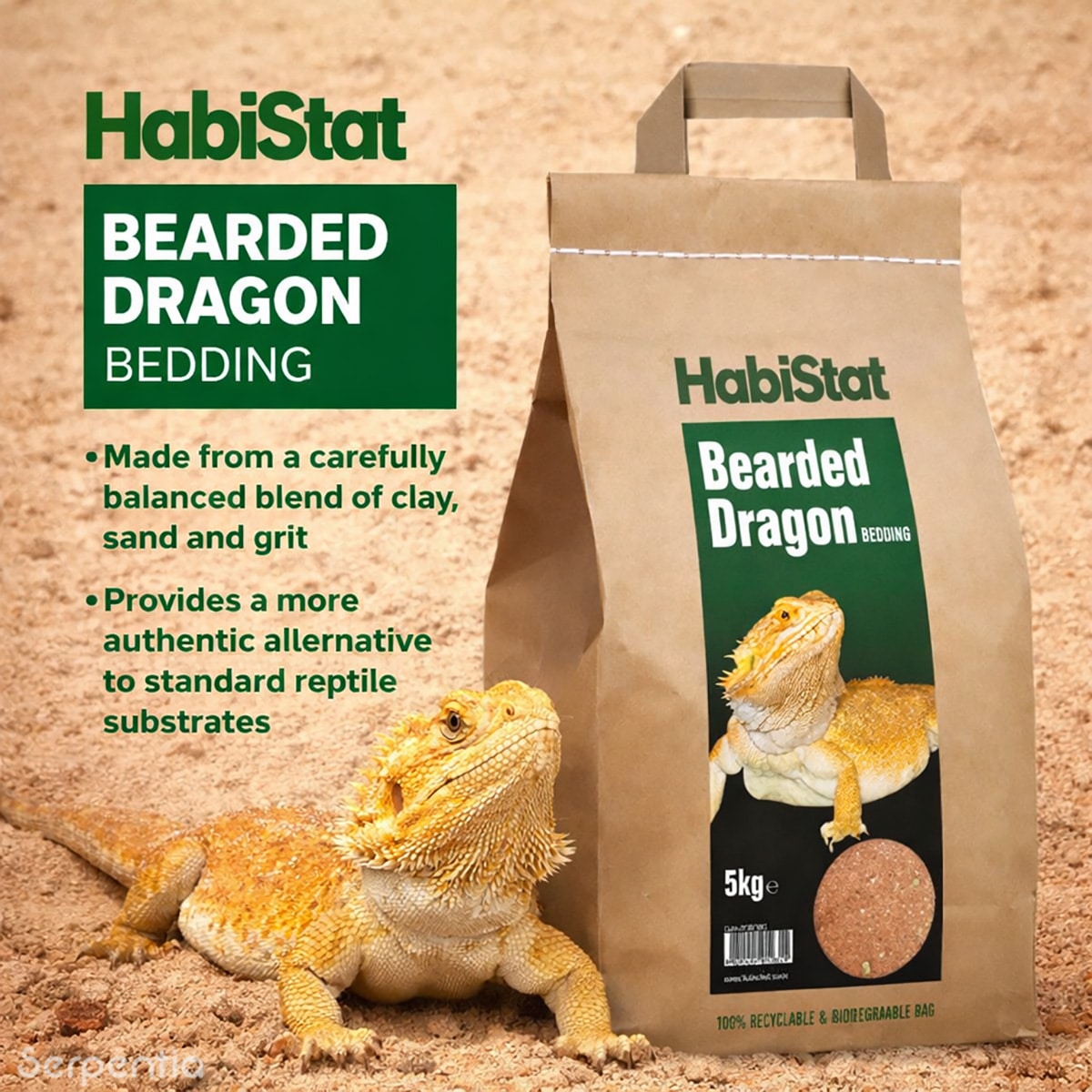 HabiStat Bearded Dragon Bedding is free from artificial additives and is supplied in a 100% recyclable and biodegradable paper bag, reducing environmental impact while maintaining product freshness.