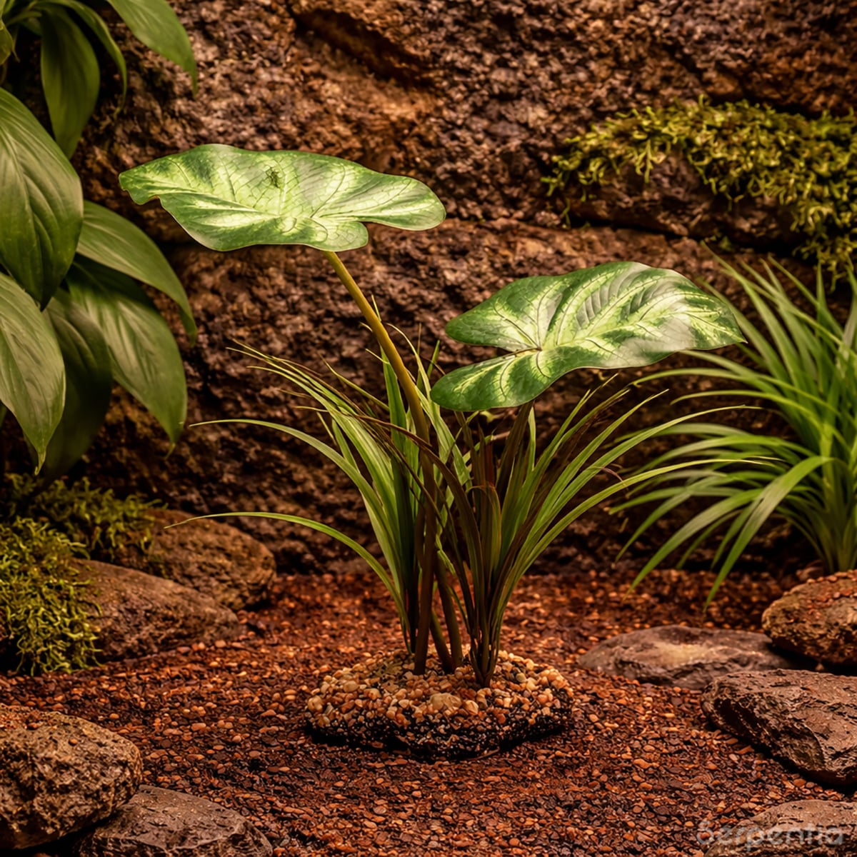 Artificial vivarium plants play an important role in environmental enrichment by adding structure, cover, and visual complexity to the enclosure. The Broadleaf Canopy provides shaded areas and visual barriers that encourage natural behaviours such as hiding, resting, and exploration.