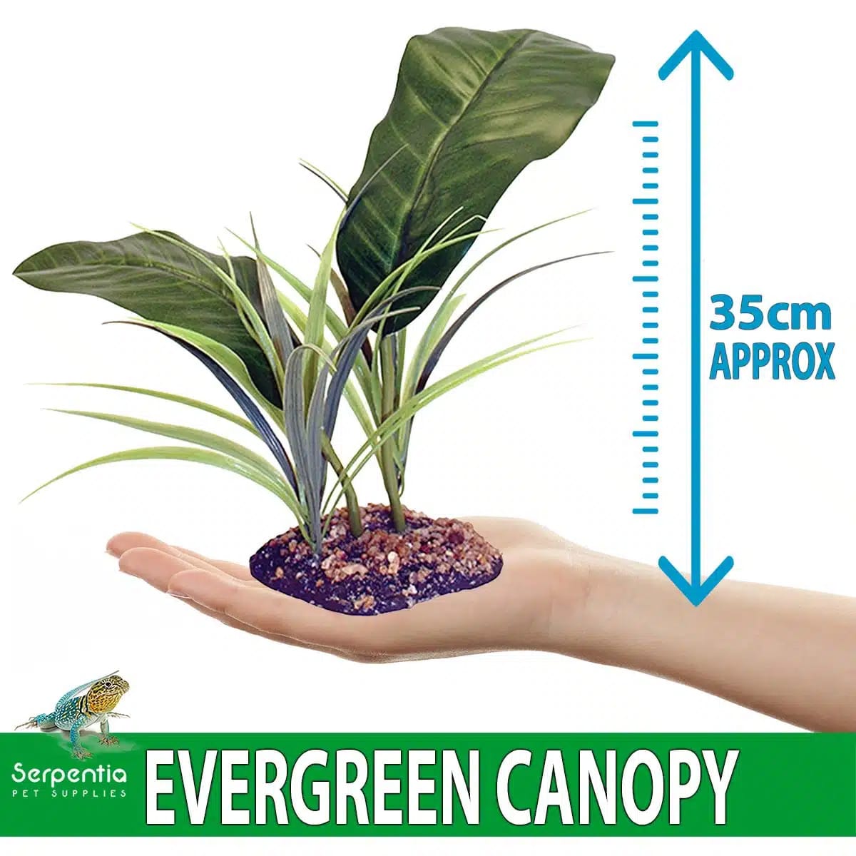 Artificial vivarium plants contribute to environmental enrichment by increasing visual complexity and usable space within the enclosure. The Evergreen Canopy provides shaded areas and visual barriers that encourage natural behaviours such as hiding, resting, and exploration.