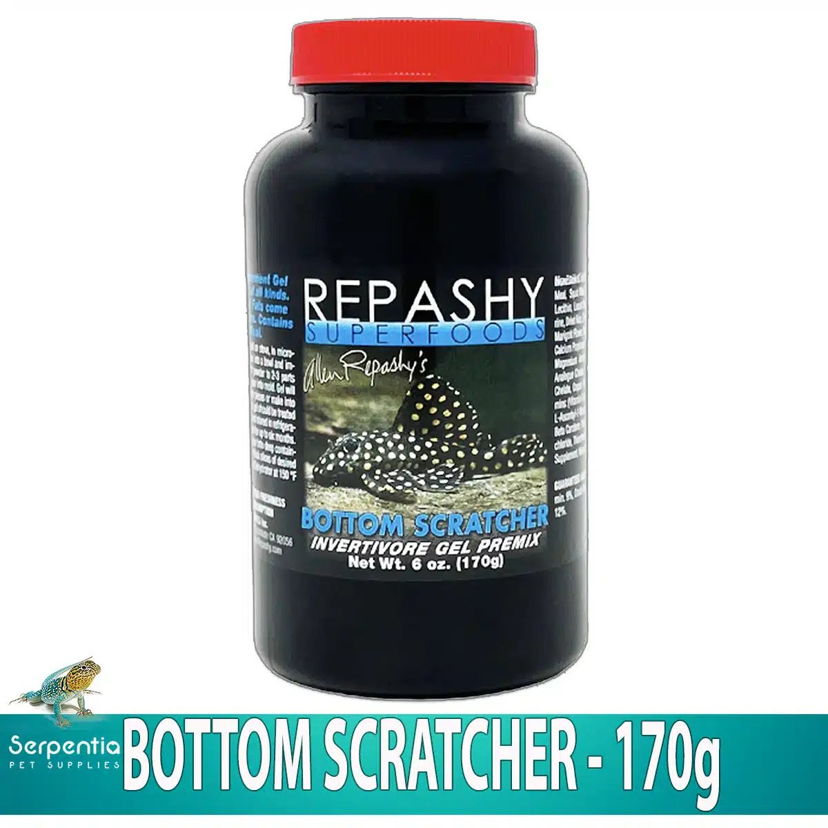 Repashy Fish Food Bottom Scratcher is a high-protein insectivore gel food developed for bottom-feeding species including plecos, catfish, loaches, and other substrate grazers.