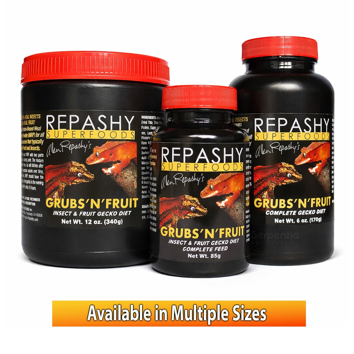 Repashy Grubs N Fruit is a premium complete fruit-and-insect meal replacement powder designed for Crested, Gargoyle, Chahoua (Mossy) and other fruit-eating geckos.